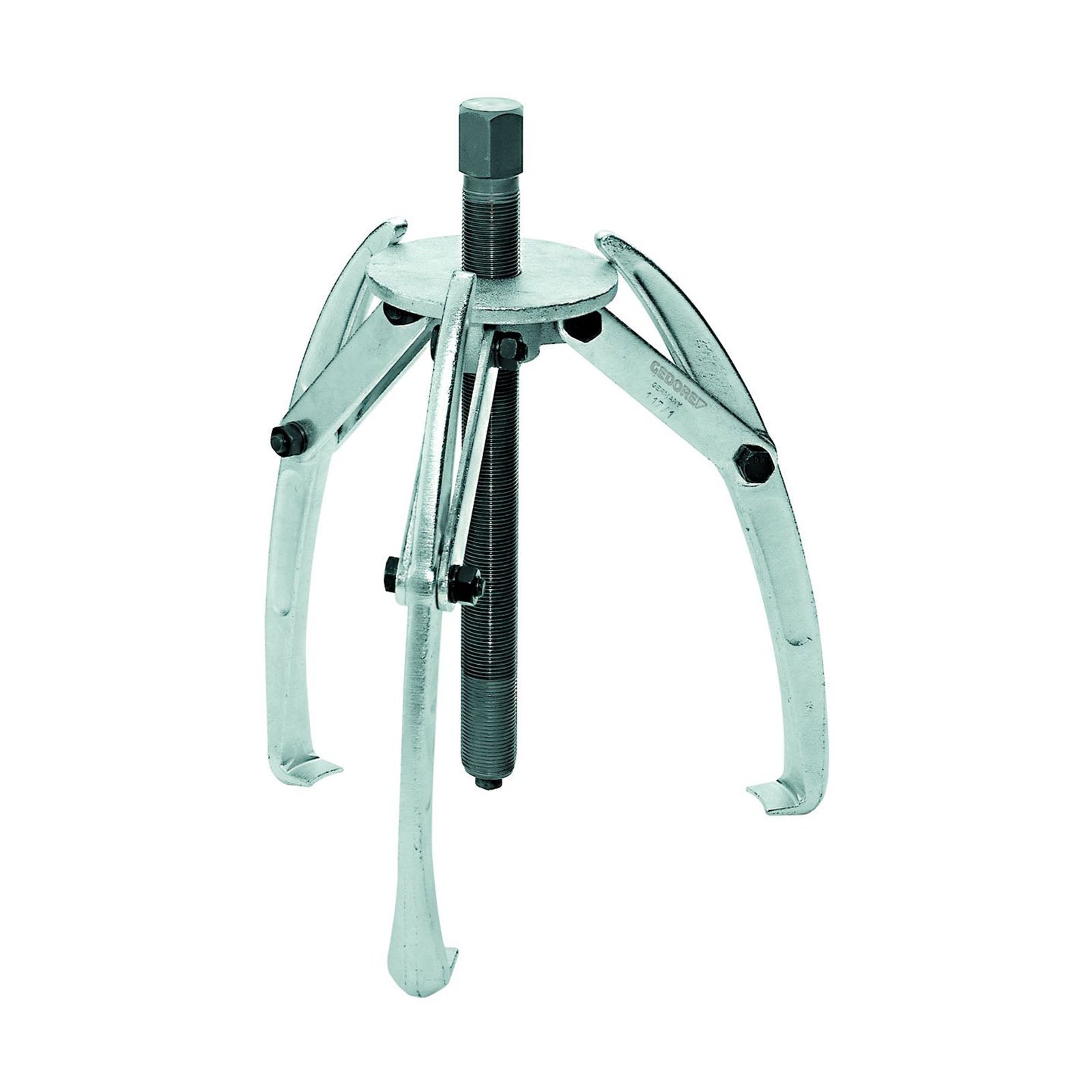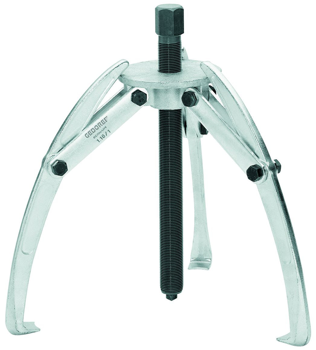 This model stands out for its exceptional durability, making it ideal for industrial applications and heavy agricultural or construction machinery. The hooks apply pressure automatically. Furthermore, it can be equipped with a hydraulic spindle (see table) and mounted as a two- or three-arm puller.
